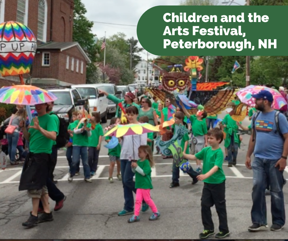 The Children and the Arts Festival in Peterborough has been engaging children and families since 1993. The festival attracts an estimated 5,000 people and is completely run by volunteers! Every third Saturday of May, venues across town host performances and activities. Sites include Putnam Park, the Monadnock Center for History and Culture, and the Mariposa Museum, among many others. Events cater to all age groups and range from dance theatre to live music to arts and crafts.The festival’s main event, the Giant Puppet Parade, features the creations of Peterborough students and community members. And of course, face-painting and delicious food vendors make the festival impossible to miss! Each year, the festival centers its decorations and events on a unique theme. Past themes include Bugs, Bugs, Bugs!, Out of This World!, A Pirate’s Life for Me, and Dragon, Fairies & Other Mythical Creatures.