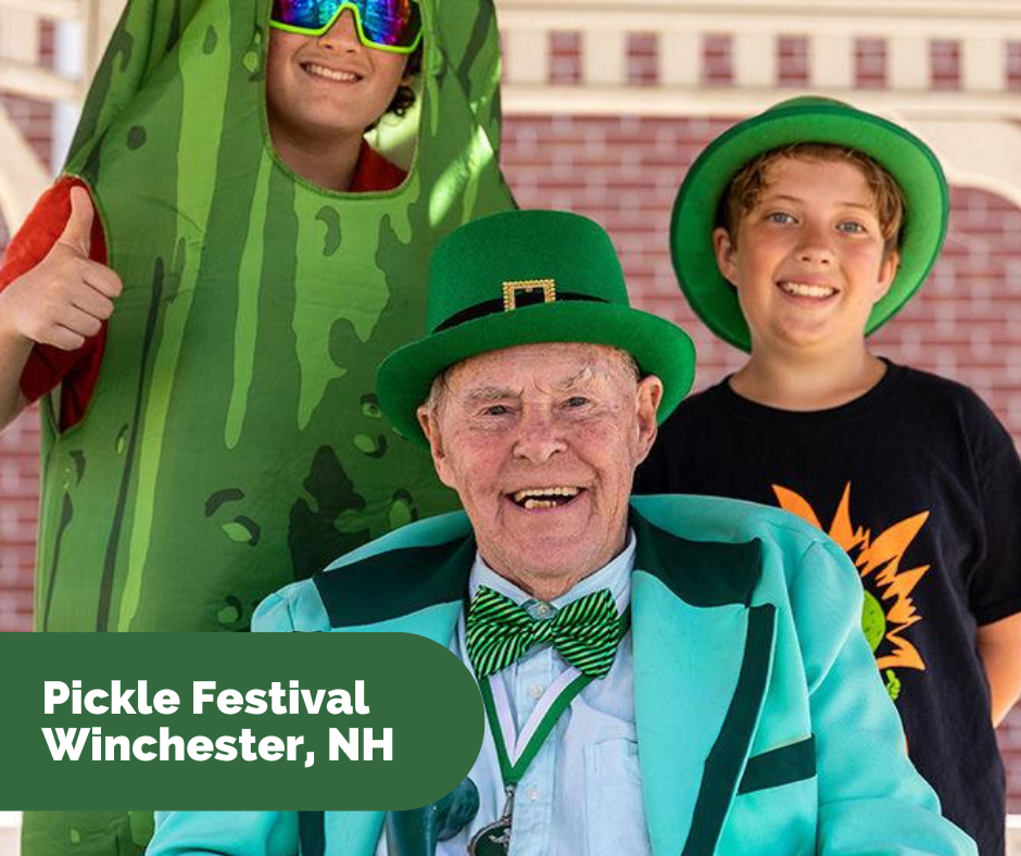 he Winchester Pickle Festival is a free event for families and all ages! Every year, from 10:00am to 4:00pm on the fourth Saturday of September, Winchester residents and tourists alike gather to celebrate this festival of Polish heritage. Farmer’s markets and vendors supply both pickle and non-pickle crafts and delicacies. (Try a fried pickle!) Free pickles of different varieties, such as half-sour spears, kosher dill spears, and red hot crosscuts, are offered by the town of Winchester while supplies last. Don’t miss the pickle parade or the pickle-eating contest! Make sure to catch Mr. Pickle, with his green suit and cane, at the gazebo for a picture! Swing by the United Church parking lot to let your kids loose in the bounce house! All day, local musicians fill the stages by the Town Hall and on Durkee St. with jazz, rock, and blues tunes. Festival-goers can find T-Shirts, pickle plushies, and other fun memorabilia to mark the event.